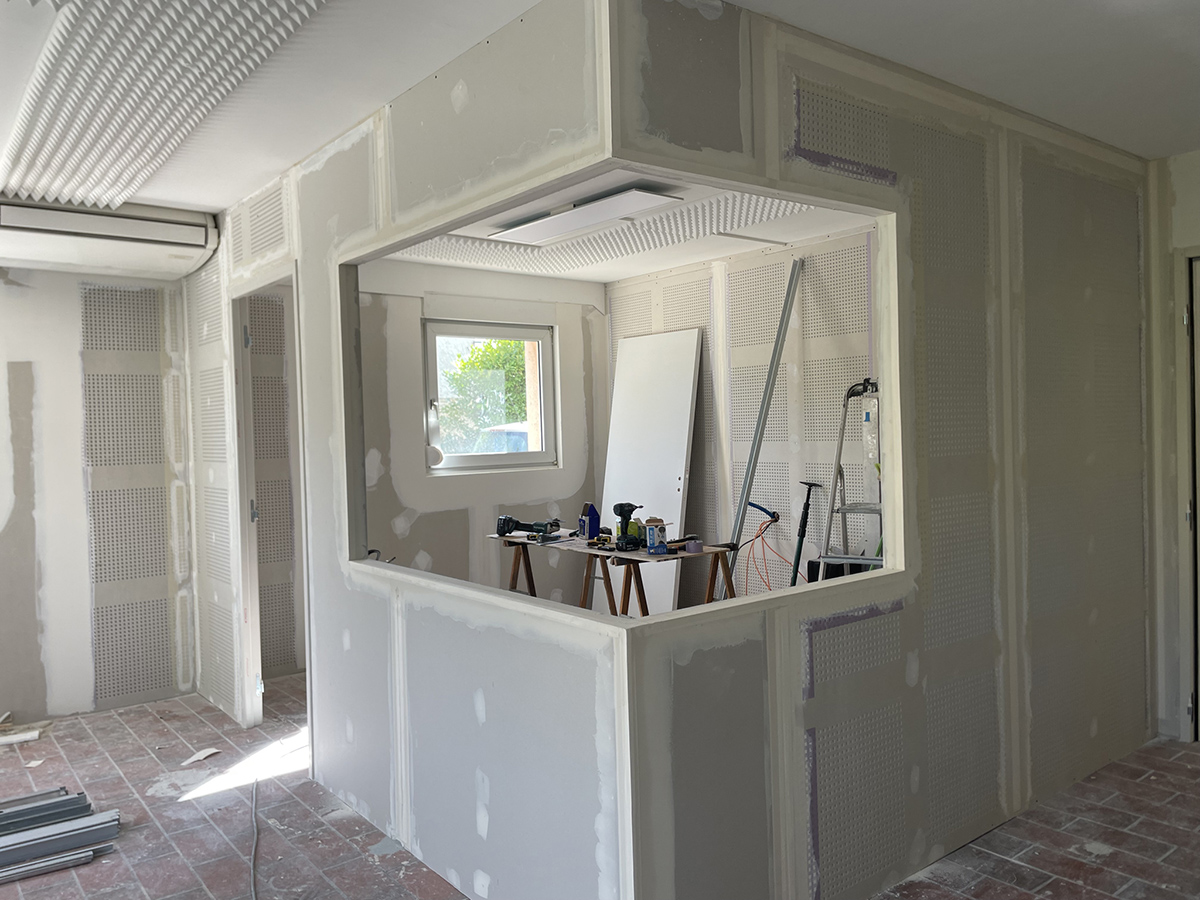 Suite à une inondation, la société Rétro+ a fait appel à nos services pour remplacer les plaques de plâtres, confectionner de nouveaux bureaux.